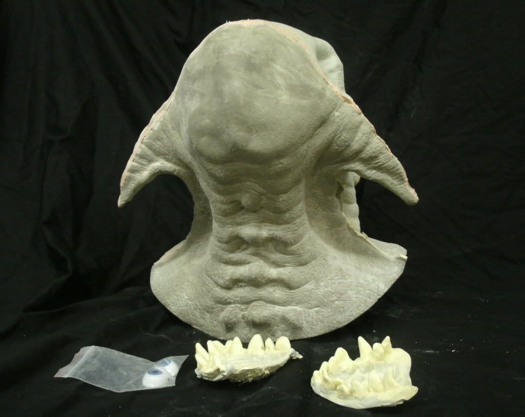 The life-size MANGALORE bust is cast on a screen used animatronics mask used in filming. The casting is professionally achieved in urethane resin and fiberglass. The eyes are glass and his is detailed with custom sculpted dentals and an ear-com.